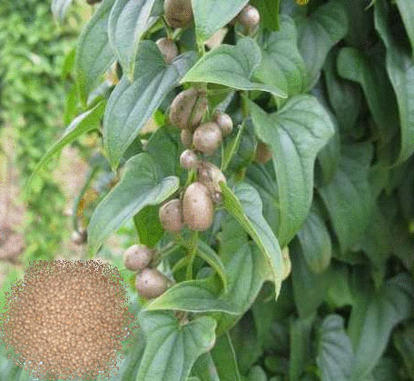 山藥在地下部分形成塊莖的同時,在地上部葉腋間著生很多的零余子。零余子是腋芽的變態(tài),也即側(cè)枝的變形,稱為地上塊莖,也叫氣生塊莖或株芽,普通稱為山藥豆。零余子呈橢圓形,長1-2.5厘米,直徑0.8-2厘米,褐色或深褐色,每667平方米產(chǎn)量可達(dá)200-600千克。