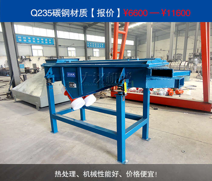 Q235碳鋼材質(zhì)直線篩材質(zhì)的一種,它的價(jià)格便宜、熱處理和機(jī)械性能好,雖然它適用的行業(yè)有很多,但是它的材質(zhì)具有一定的腐蝕性,衛(wèi)生條件也是相對差一些,所以對于篩分石英砂的用戶來說還是要慎重選擇。