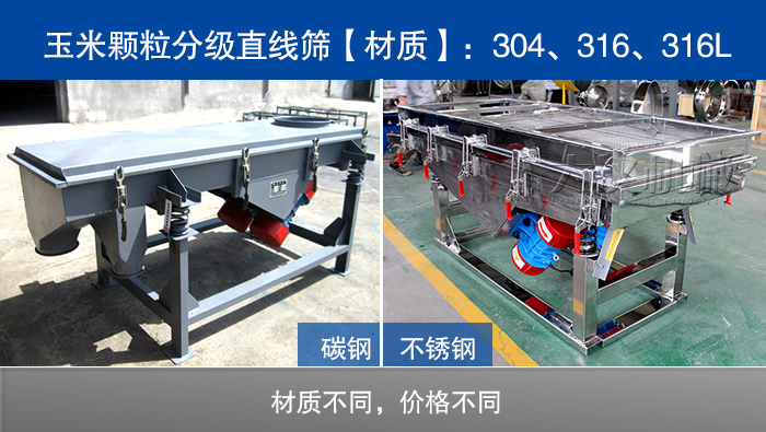 不銹鋼直線振動篩分為兩種結(jié)構(gòu),一種是整機均采用不銹鋼制成,另一種是與物料接觸不分為不銹鋼材質(zhì),底座為碳鋼材質(zhì),至于如何選擇就看您對衛(wèi)生環(huán)境的要求以及成本預(yù)算了。至于三種材質(zhì)的價格關(guān)系是316L>316>304,其中316L不銹鋼的價格貴,304不銹鋼是性價比高的材質(zhì)。