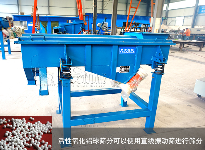 活性氧化鋁球?yàn)榘咨驙疃嗫仔灶w粒,粒度均勻,表面光滑,機(jī)械強(qiáng)度大,吸濕性強(qiáng),粒徑通常為1mm-10mm,根據(jù)活性氧化鋁球的物料特性和基本篩分環(huán)境要求參考,直線振動(dòng)篩是可以用來篩分活性氧化鋁球的。