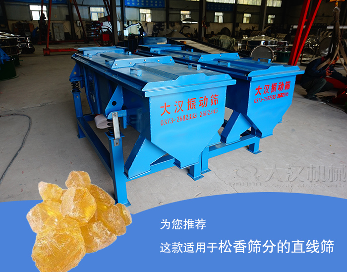 松香是以松樹(shù)松脂為原料,通過(guò)不同的加工方式得到的非揮發(fā)性天然樹(shù)脂。松香是重要的化工原料,廣泛應(yīng)用于食品、化工、醫(yī)藥、建材等多種行業(yè),是制造油漆﹑肥皂﹑紙﹑火柴等的工業(yè)原料。松香作為一種大小、形狀不統(tǒng)一的塊狀物料,可以使用直線篩來(lái)進(jìn)行篩分工作,下面小編就為您這款適用于松香篩分的直線篩。