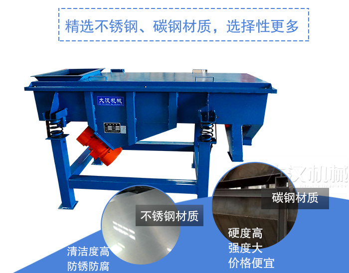 松香直線篩采用不銹鋼和碳鋼兩種材質(zhì)。不銹鋼材質(zhì)(如:304)清潔度高,防銹防腐越強(qiáng)大,不會(huì)污染松香,使用時(shí)間長(zhǎng);碳鋼材質(zhì)(如:Q235)硬度高,強(qiáng)度大,價(jià)格便宜,是多行業(yè)常用的材質(zhì),你可以根據(jù)松香衛(wèi)生要求、環(huán)境要求以及成本預(yù)算的多少來(lái)進(jìn)行選擇材質(zhì)的。