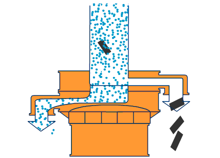 由直立式振動(dòng)電機(jī)作為激振源,電機(jī)上、下兩端安裝有偏心重錘,將電機(jī)的旋轉(zhuǎn)運(yùn)動(dòng)轉(zhuǎn)變?yōu)樗?、垂直、傾斜的三次元運(yùn)動(dòng),再把這個(gè)運(yùn)動(dòng)傳遞給篩面進(jìn)行篩分。調(diào)節(jié)上、下兩端的相位角,可以改變物料在篩面上的運(yùn)動(dòng)軌跡。