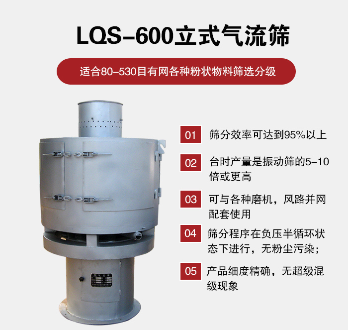 大漢公司是微細粉篩分機械專業(yè)性生產廠家。隨著市場經濟以及科技的發(fā)展,產品質量對各種粉狀物料的細度、精度要求越來越高。微細粉物料易粘附、粒徑小、質輕、易懸浮等特點;國內現有旋振篩,直線篩利用其重力勢,激振力,彈力作業(yè)很難篩分,易引起粉塵飛揚,更難達到技術要求。大漢公司針對這一情況,工程技術人員經過多年來研究試制,開發(fā)出專門用于微細粉篩分的新產品——氣流篩。